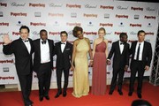 Stunning - I love her hair swept back, and the dress is fabulous.