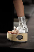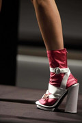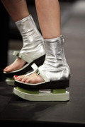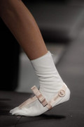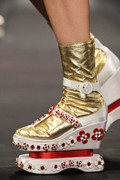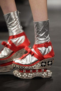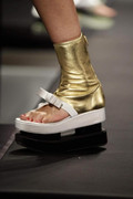 In fact there was only one place those blooms didn't get a look in and that was the shoes - and that's because when it comes to the shoes, Prada likes to propose a whole new challenge for them of their own. Geisha block platforms anyone? Or perhaps some golden sock booties complete with ribbon thong detailing? It was that Prada mind game at work again - from anyone else and you'd be likely to think twice, but not with these, Prada style.