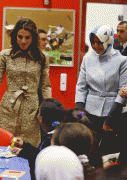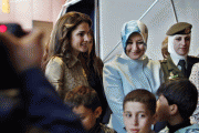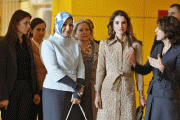 UNICEF Deputy Regional Director Marilena Viviani, Jordan's Queen Rania and Jordan's Education Minister Walid Maani meet with school heads as part of a campaign to stop violence against children in Amman November 18, 2009