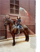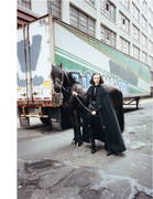 I saw her today getting off the subway in Brooklyn. She was wearing a blue, semi-shear button up, black jeans, and I believe black flats. I couldn't believe it was her because that section of Brooklyn isn't very 'hip'. She looked stunning. Her hair was pulled back, and she just looked stellar.