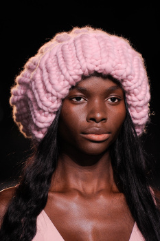Hanlon gave all forty-five models (except, of course, McMenamy) twenty-four-inch extensions, which he misted with water and divided into two impossibly long plaits to set a loose wave. Taking out the braids right before showtime and giving a few girls—Cara Delevingne and Janice Alida among them—oversize beanies, as has been par for the course this season, Hanlon was left with thin, limp, crimped strands. “This is not so much a hairstyle as it is an effect,” he explained.