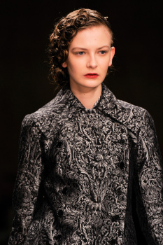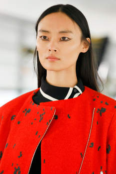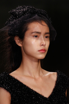 The Erdem girl has always been on something of an emotional journey. Two seasons ago, she was looking for love; last season, she had found it and lost it. This season, however, she gave up on the prospect of love altogether—and took a turn toward the dark side instead. “There’s a touch of Wednesday Addams about her,” makeup artist Hannah Murray confirmed backstage of the “spooky” beauty look. “The collection is quite dark, so the girl we’re creating is a little ghostly.”