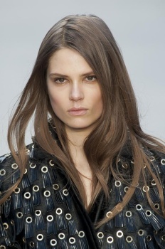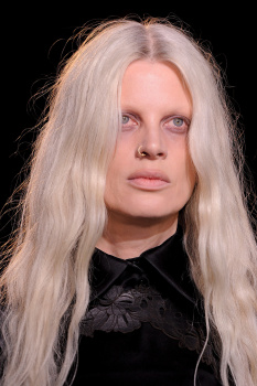 LONDON — The beauty look at Julien Macdonald was dead specific. “We were feeling a soundtrack of Marilyn Manson and an early Nineties woman epitomized by Stella Tennant - as shot by David Simms for ID Magazine,” said makeup artist Val Garland. In other words, it was all about grunge deluxe created using L'Oréal BB and CC creams for a flawless finish to the skin with contour and highlighting, but no blush.