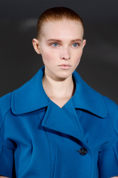 “Jil Sander is a modern-thinking designer,” Guido Palau pointed out backstage at Sander’s Fall show—just her second womenswear collection since returning to her namesake brand last year. As a result, it’s almost unheard of to find an inspiration board, littered with referential images of icons of yesteryear, backstage at one of the arch-minimalist’s presentations, which often leaves Palau with the more open-ended task of interpreting Sander’s “pure, simple aesthetic” into a corresponding hair look.