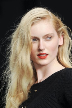 Hairstylist Malcolm Edwards' reference was “sexy Bohemian” with the subtle texture in the hair mirroring Daniella Helayel's collection: sexy, undone festival hair.