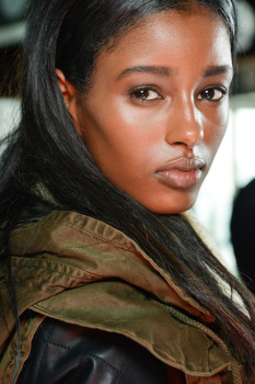 The wind-chapped look was complete with a clear gloss on the eyelids to bring out the natural skin tone.