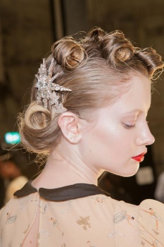 Hair was in a similar vein. “The reference was punk couture so there's an element of punk albeit a really young youthful version; it's inspired by rock 'n' roll punk mixed with haute couture,” said Sam McKnight.