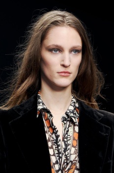 In an interesting turn of events when it came to models’ manes, Kane brought in the big guns for his first show as part of the PPR family, in the form of Redken creative consultant Guido Palau—who, it should be noted, is typically a scarce sight in London. Prestige aside, Palau kept with the same light-handed approach, having models wash their hair with Redken Clear Moisture Shampoo before they arrived for their early morning call times. Then, dampening strands and rough-drying them with his trusty BaByliss Volare 1 dryer, Palau fashioned deconstructed center parts. “I’m not even using a brush,” he boasted, letting his fingers encourage a natural wave to “bring a touch of ease to the fashion.”