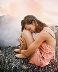 “His photographs of the past ten years, however, are more ambitious, more formally complex, and more expensive to produce—if just as suspiciously savvy. They’re the result of studio shoots like this one or, more often, of costly and complicated road trips across America. The models spelunk in Technicolor caves, do flips off barn roofs, trudge through mud, run through fields with sparklers, climb waterfalls, hang from trees, zip-line, play tag, and leapfrog over one another.”