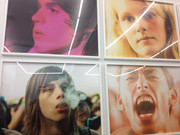 "Grids" focuses on the face with close-up portraits of fans at concerts. Showing a less-known side of his work that he's cultivated since 2007 (documenting live shows), the pieces feel much more emotional and intimate than those in "Animals." Not called "Grids," for nothing, the photos appear in large-scale tiling and feature natural, unedited lighting from colored concert lights.