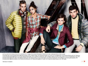 British Vogue x Uniqlo Ph: Thomas Cooksey with models Giedre Dukauskaite and Max Barreau British Vogue Dec 2012