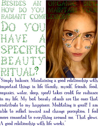 Besides an organic diet, how do you maintain your radiant complexion? Do you have a specific beauty ritual?
