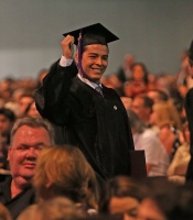 Sofia Vergara and Joe Manganiello attend son Manolo Gonzalez 2015 Commencement for Emerson College at the Boston Convention and Exhibition Center in Boston Mass.