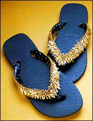 H. Stern, the jeweler, is a case in point: next week, it will introduce a line of limited-edition gold Havaiana flip-flops. The most expensive pair, made with 1,532 tiny gold feathers accented with diamonds, costs $17,000. Poor relations will have to satisfy themselves with the white flip-flops ($3,200) or the brown ones ($2,100).