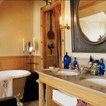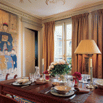 I also want a real mixture of modern, clean, white gloss surfaces and frosted glass with some really interesting, antique feature pieces like a burgundy studded leather chair or some baroque end tables (I already have a deep red and gold classic French carpet!)