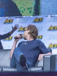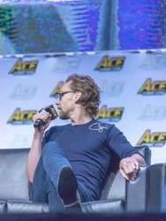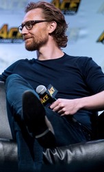 Tom Hiddleston on stage for a panel at the WaMu Theatre in Seattle, Wash., June 24, 2018