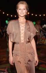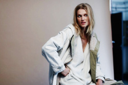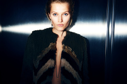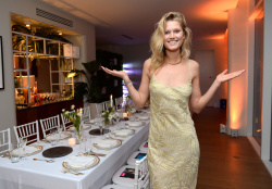 To meet Toni Garrn at Art Basel Miami Beach, you must enter the new Faena Hotel via a secret side entrance. You must bypass a pack of teen girls waiting for Justin Bieber (who did not, it seems, show up). You must take two gilded elevators, paneled in antique selvedge mirrors taken from shuttered French bistros, to the very top floor. You must bypass several men of the Night's Watch (okay, fine, they're fashion publicists...) armed with "are you on the list?" iPads. And then, in perhaps the most difficult hurdle of all, you must walk past a porcelain bathtub packed with Perrier-Jouet champagne, without stopping to steal it or simply jump in. (We managed to resist. Katie Holmes—yes, that Katie Holmes–wasn't so lucky.)