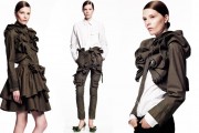 ^ Looks like they're really keen on establishing Valentino as the new house-of-ruffles. Not that I mind of course, the jacket and coat are quite beautiful, even if it is the most hideous colour I've ever seen. Meanwhile those pants are....uncanny, to say the least. I know it's meant to be a more commercial line and all but WHO in their right mind would pick cargo pants for Valentino? I hope Garavani isn't looking at this.