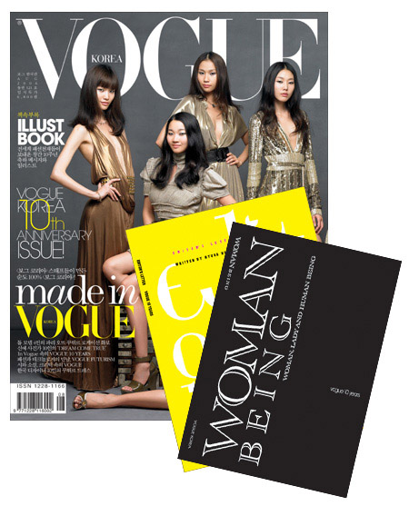 five Korean top models on the cover ; (from left) Song Kyung Ah known as "Song" in US and Europe) Jang Yoon Joo, Kim Won Kyung and Han Hye Jin (konwn as "Han" in US and Europe) and I cannot ID the one whose face is hidden by the supplements