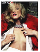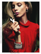 it seems like a cont of jewelry "casino" diamonds-casino-smoking thing in may issue, but now it`s about red clothes and diamods. same make-up, hair and interiors.