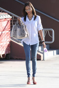 Awesome outfit. She always looks so fresh and effortless in her candids. I like her with a cleaner, more minimalistic face because she's got a great complexion. Will somebody id that blouse, because it's amazeballs! :heart: